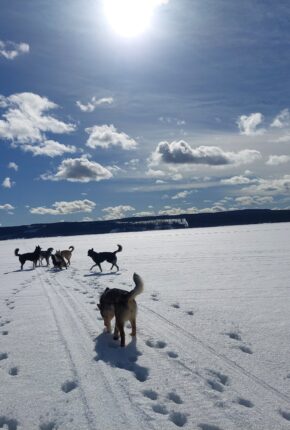 Throughout our career path in different areas, we both always had a sweet spot for private customers and small groups and have privileged quality over quantity. Rachel was active in the physical and mental preparation for outdoor activities and self-defense, and had set up on her own and with dogs several Arctic races and expeditions. Marc had a long career as a specialist in Toyota Land Cruiser and Hilux, and has participated in many car rallies, such as the Dakar. When our lives took a different turn some years ago after the sled dogs entered our world, we were able to successfully transfer a lot of our knowledge and experience into the mushing world and sled dog races.